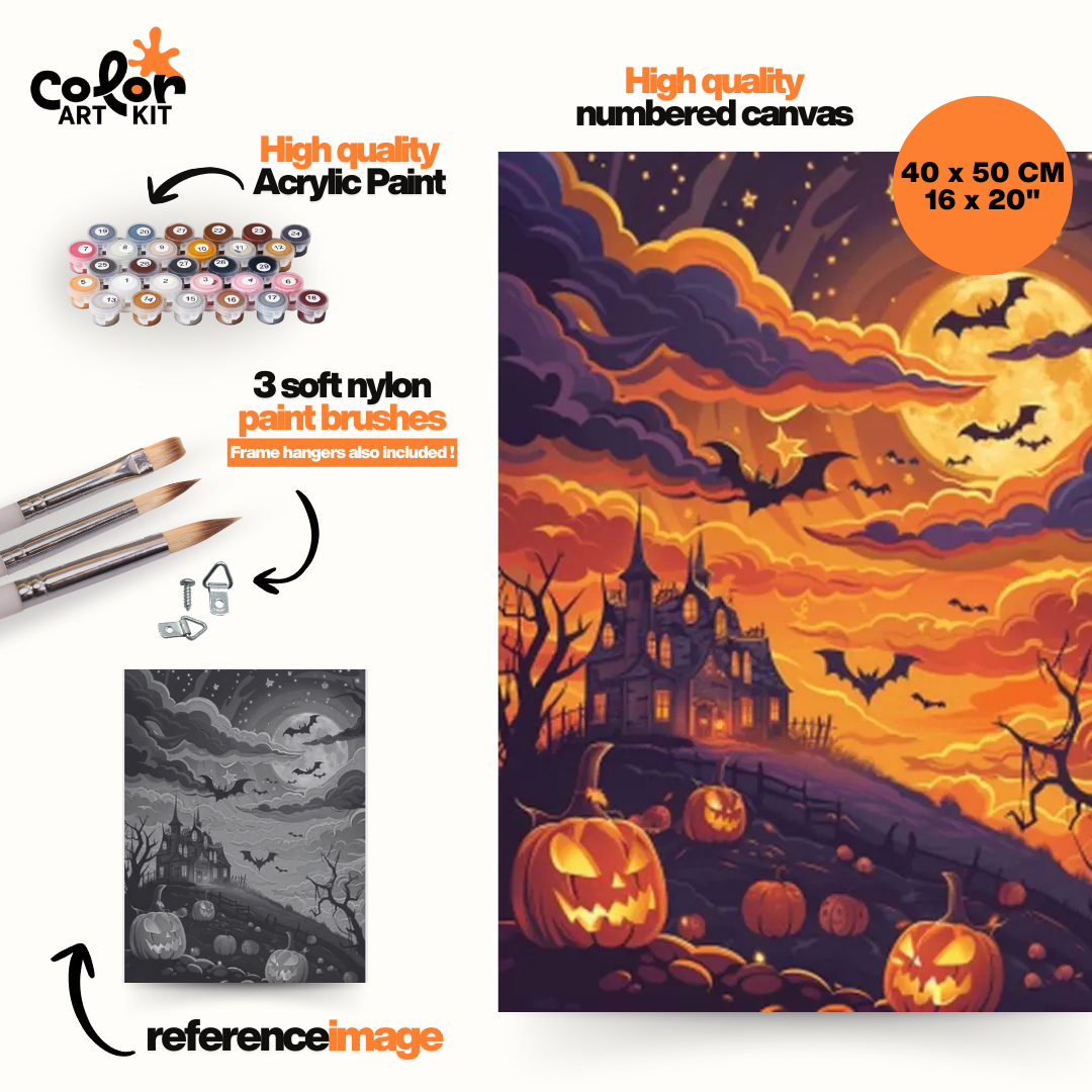 🤩 Everything included : High quality numbered canvas, Nylon Brushes and 24 acrylic paints